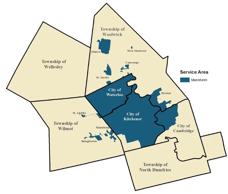 Map of the Mannheim service area. (Region of Waterloo)